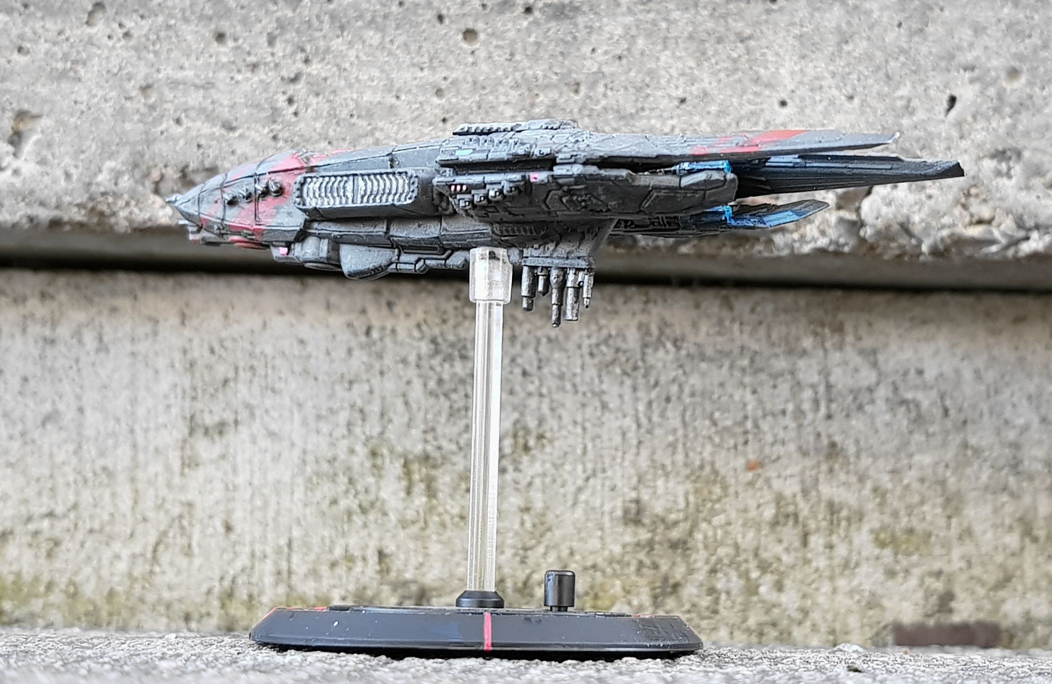 The Kalmar class missile cruiser is a experimental cruiser class. Its a homemade ship class from the Nidavellir Shipyards packed full with missiles. Some extra stowage areas for extra missiles were added around the engine areas that is fully armoured.